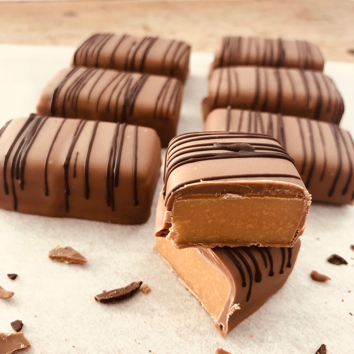 Our caramel is soft, made with butter and cream, with a generous pinch of Himalayan salt, dipped in milk Belgian chocolate.