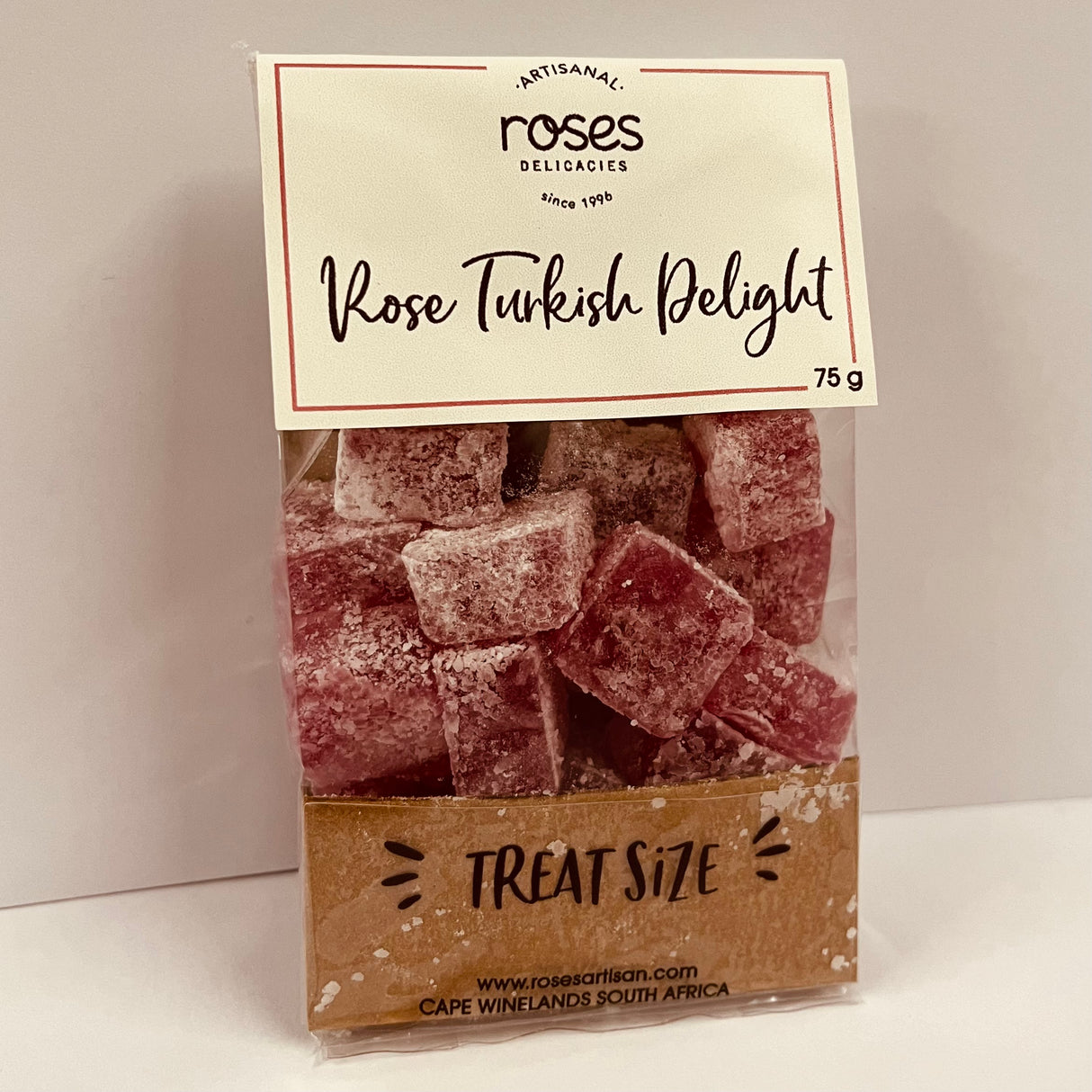 Our Turkish Delight is soft, yet firm with a strong rose perfume flavour. Using beetroot to achieve a beautiful pink colour.