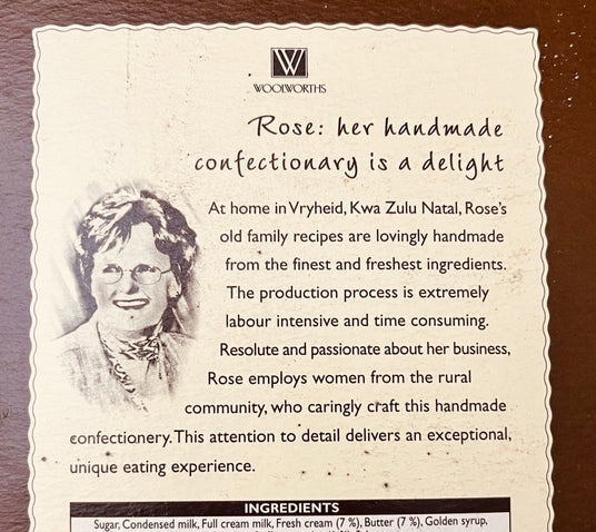 Our story began in Vryheid, Kwa-Zulu Natal where Rose Opperman, a farmer's wife with an entrepreneurial streak and mom of five, turned her passion for good food and fine sweets into a business at the age of 56.