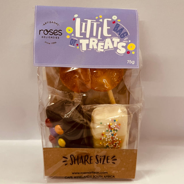 Bag containing a 2x Fruity Lollipop, 1x Smartie Mallow and 1x Tutti Toffee